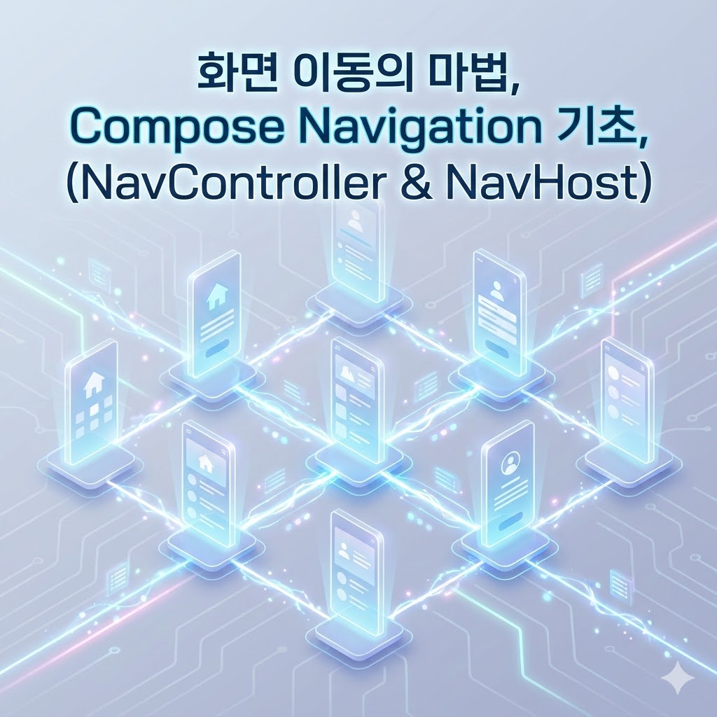 사용자가 버튼을 눌렀을 때 다른 화면으로 이동하고, 다시 뒤로 돌아오는 기능을 구현하려면 **Navigation(내비게이션)**이라는 개념이 필요합니다. Compose에서는 이 '화면의 지도'를 어떻게 그리는지 핵심 3요소를 통해 알아보겠습니다.