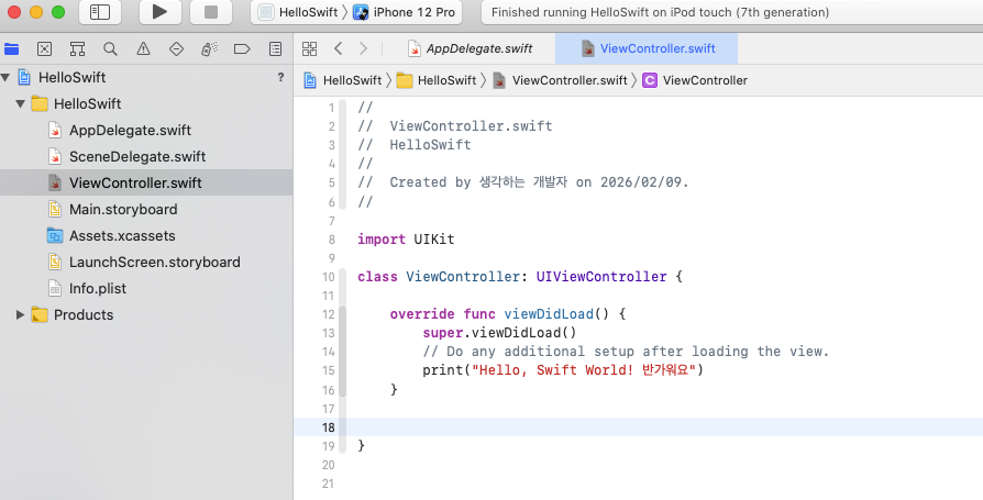 - 코드 작성: viewDidLoad() 함수 안에 아래 코드를 추가합니다.