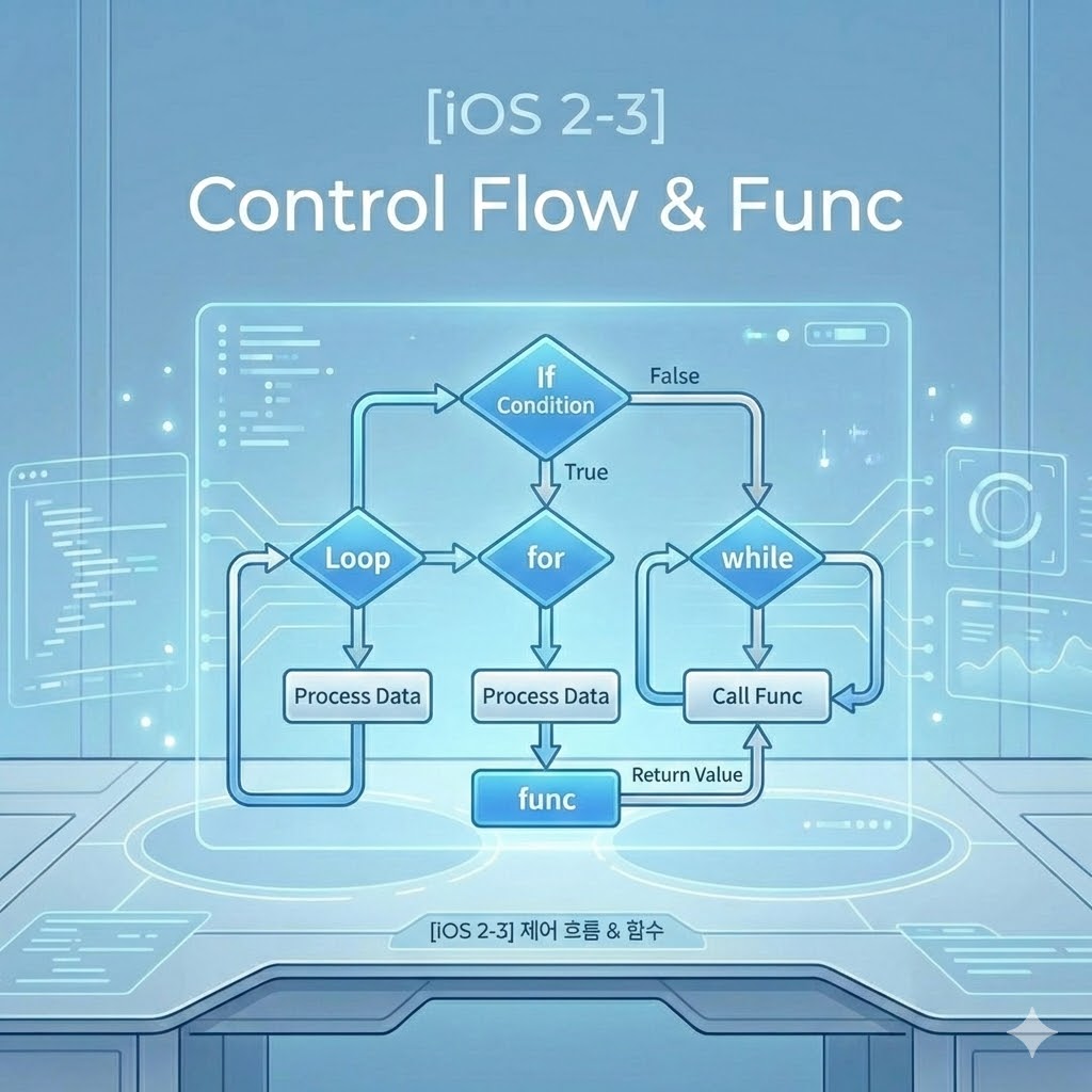 우리는 지난 시간에 변수와 옵셔널이라는 '재료'를 배웠습니다. 이제 그 재료들을 가지고 요리할 시간입니다. 프로그램이 상황에 따라 판단하고(조건문), 같은 일을 반복하며(반복문), 똑똑한 레시피(함수)를 만드는 법을 알아보겠습니다.